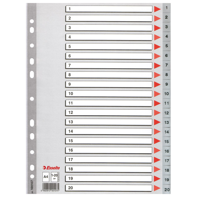 Pregrada plastična A4 brojevi 1-20 Esselte 100107 siva