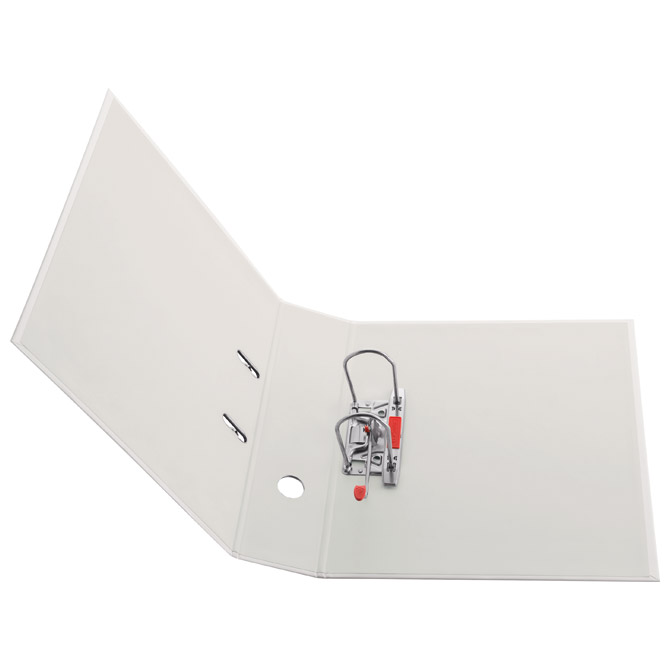 format: A4; hrbat: 80 mm; plastificirani karton s vanjske strane i sivi reciklirani papir s unutarnje strane; bočno zatvaranje i rupa za prst na hrptu za jednostavno rukovanje i sigurno skladištenje dokumenata; poboljšani mehanizam s gumiranim pritiskivačem i hvatištem za ugodnije rukovanje; ekološki prihvatljiv (Blue Angel certifikat)