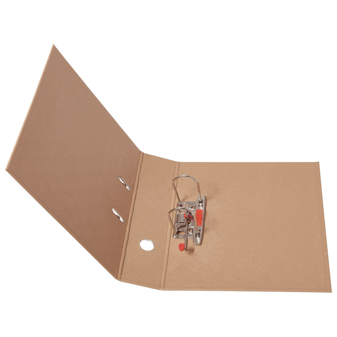 format: A4; hrbat: 80 mm; reljefni papir za pakiranje optik s vanjske strane i smeđi papir za pakiranje optik s unutarnje strane; bočno zatvaranje i rupa za prst na hrptu za jednostavno rukovanje i sigurno skladištenje dokumenata; poboljšani mehanizam s gumiranim pritiskivačem i hvatištem za ugodnije rukovanje