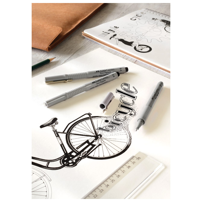 ima dugi metalno ojačan vrh; ergonomski grip; metalna klipsa; pigmentna tinta je permanentna i otporna na svjetlost; bez kiseline; spremnik i poklopac flomastera su od recikliranog materijala; idealan za crtanje, skiciranje i pisanje