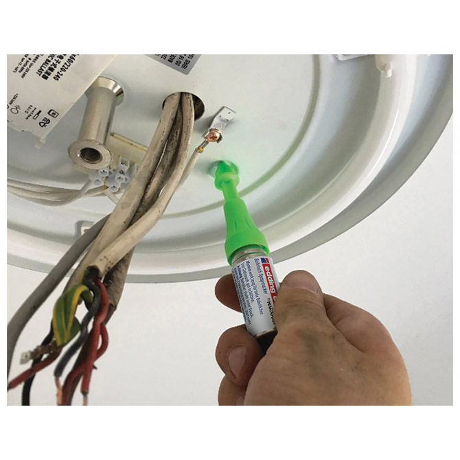 individulno oblikovana mlaznica kredastog spreja omogućava privremeno označavanje kroz rupe za bušenje dubine do 50 mm i promjera od 3-13 mm; s gumbom za pritiskivanje; za teško dostupna mjesta; koristi se iz bilo kojeg kuta i visine, čak i iznad glave jednom rukom; lako se može obrisat; ne ostavlja tragove; blagog mirisa; intenzivna i privlačna boja koja je vidljiva na gotovo svim površinama; za duboke rupe prije upotrebe protresti