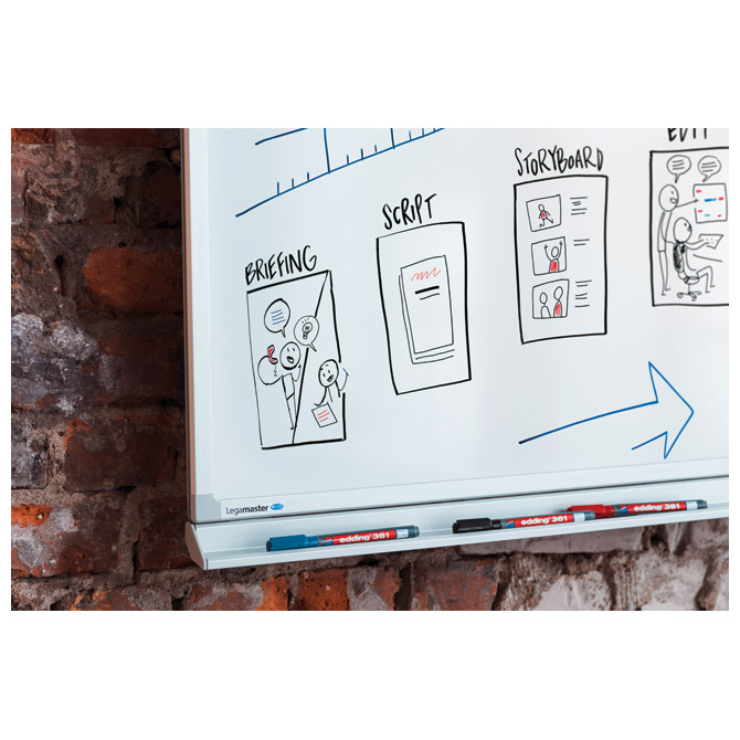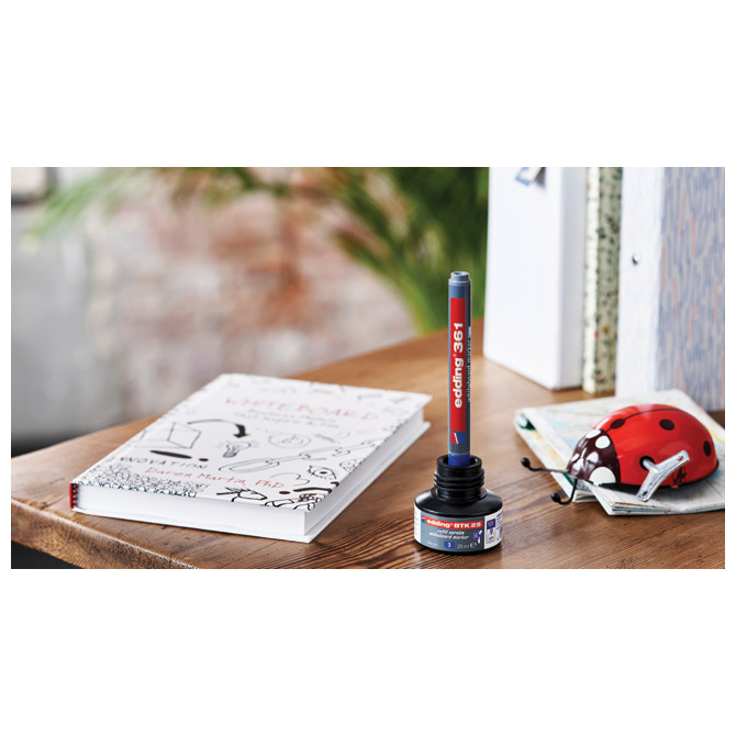 nepermanentni, pigmentni s mogućnošću ponovnog punjenja; okrugli vrh; širina ispisa 1 mm; otporan na svjetlo; brzo se suši; lako se briše sa svih glatkih površina (staklo, melamin,…); za pisanje po svim glatkim površinama i bijeloj ploči; može se koristiti za flipchart