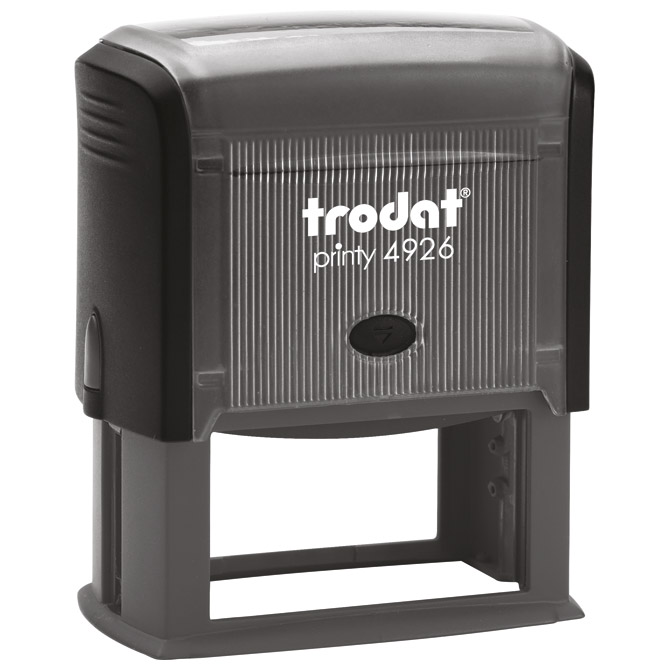 ergonomski dizajniran, dinamičkog oblika; sa indeksnim prozorčićem za jednostavniju identifikaciju; sa click-out patentom i obostranom kočnicom za jednostavniju izmjenu jastučića; ima i prozirni pozicionerski prozorčić radi lakšeg pozicioniranja otiska; sa crnim jastučićem; rezervni jastučići u bojama: crna, crvena, ljubičasta, plava, zelena i bez tinte