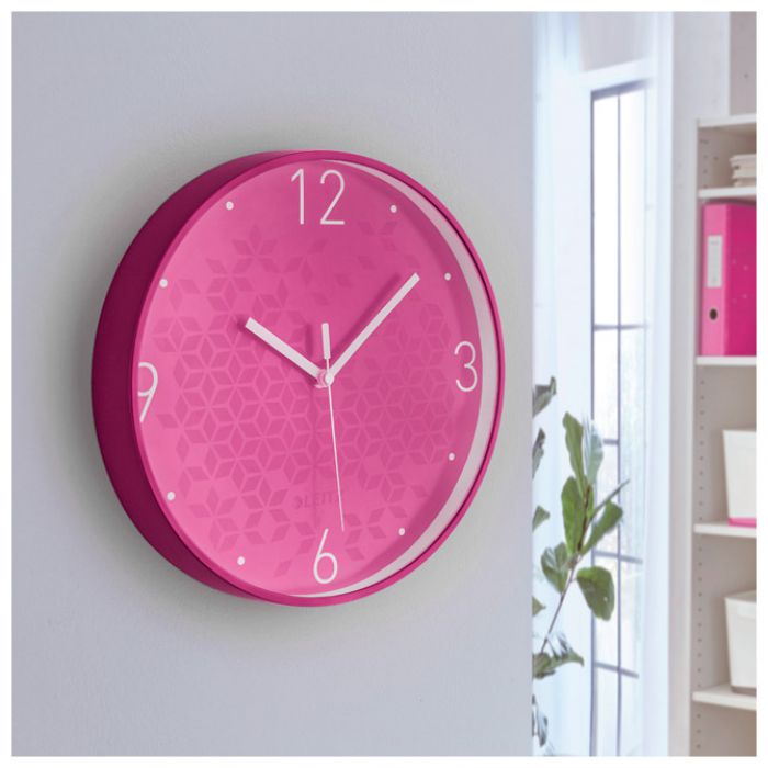 fi: 29 cm; dvobojni okvir izrađen od robusne plastike u kombinaciji sa staklenom prednjom stranom; WOW boja lica s geometrijskim uzorkom i velikim brojevima; kazaljke i brojevi su bijele boje kao odličan kontrast pozadini; tihi kvarcni satni mehanizam idealan je za urede, prostore za čitanje i spavaće sobe tako da vas ne ometa zvuk otkucavanja sata; iz WOW asortimana koji s upečatljivim i modernim bojama daje WOW efekt; za bolju organizaciju u uredu ili kod kuće; 1 AA baterija (nija uključena); montažna rupa za lako vješanje; težina: 0,55 kg