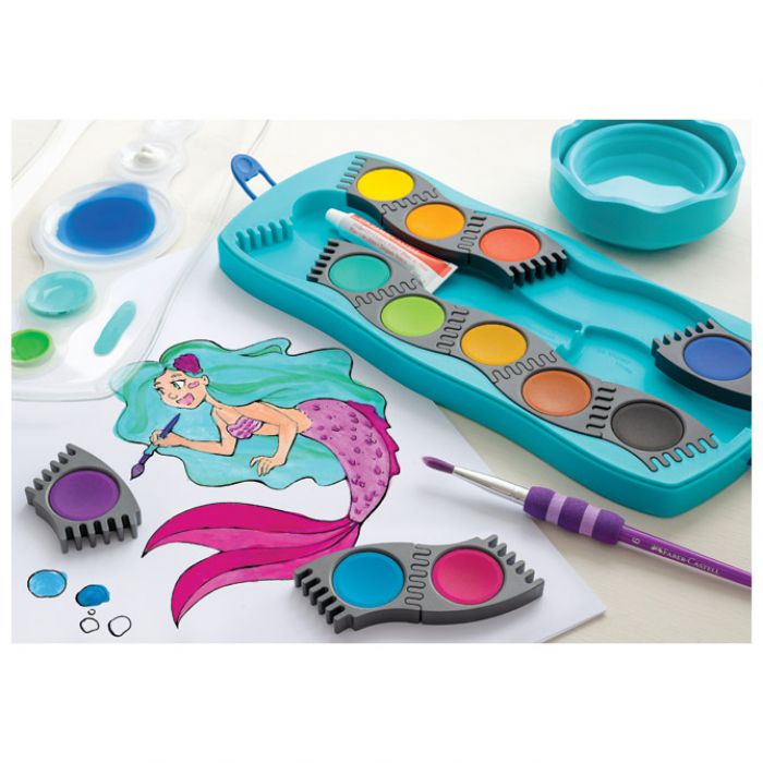 BOJA VODENA FI 24 MM 12BOJA PLUS BIJELA TEMPERA CONNECTOR FABER-CASTELL 125003 TIRKIZNA KUTIJA