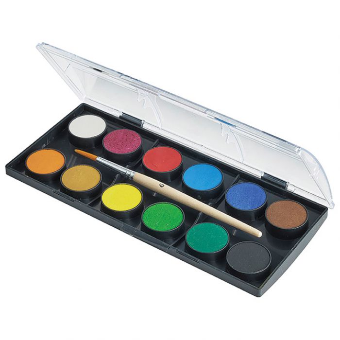12 boja; s kistom; živopisne boje s visokom neprozirnošću i mogućnošću pokrivanja; miješanjem boja dobije se neograničen broj nijansi boja; PVC kutija uložena u kartonsku kutiju; blister