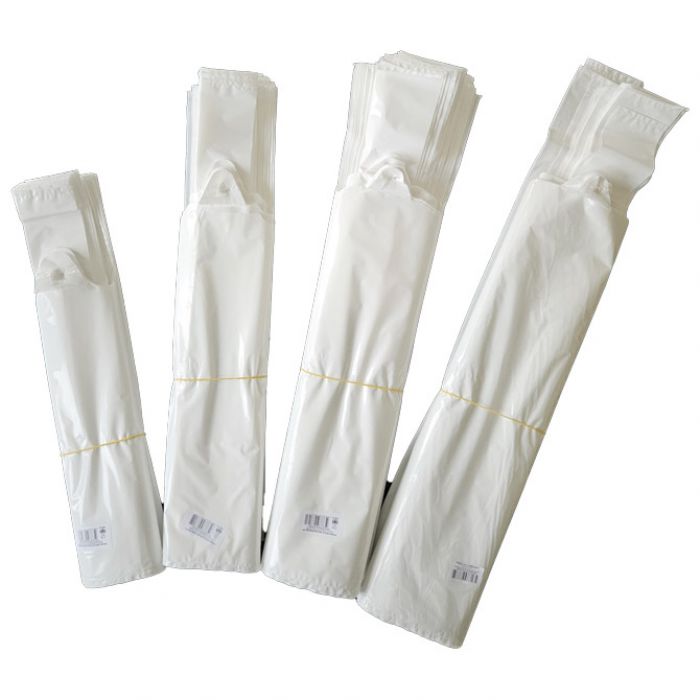 dimenzija: 35+(2×11)x65 cm; debljina: 51 mikron; materijal: LDPE (low density polyethylene); set od 50 komada