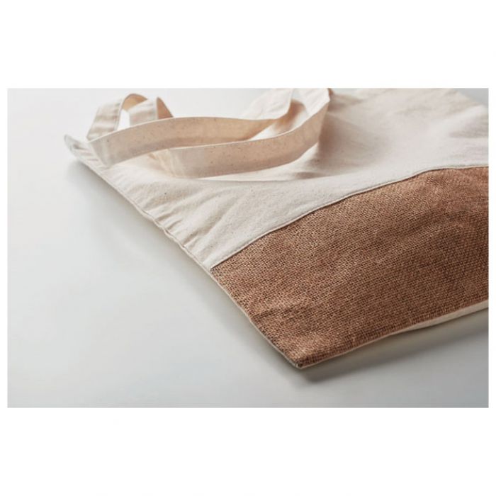 Pamučna torba za kupovinu s detaljem od jute. Duge ručke. 160 gr/m2.